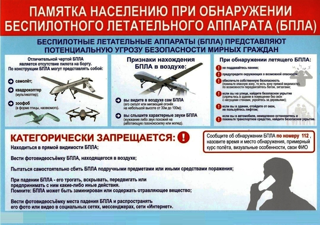 Внимание!!! Доводим до Вашего сведения правила безопасности при встрече с беспилотным летательным аппаратом ( БПЛА). Родители будьте бдительны! Не оставляйте детей без присмотра! В случае обнаружения БПЛА или его остатков незамедлительно сообщайте по номеру 112.